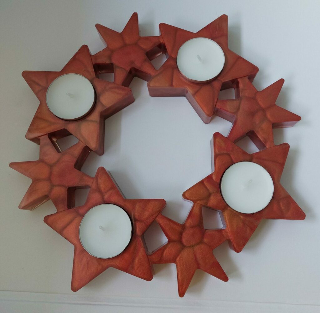 Mooie sterren krans voor 4 waxinelichtjes.