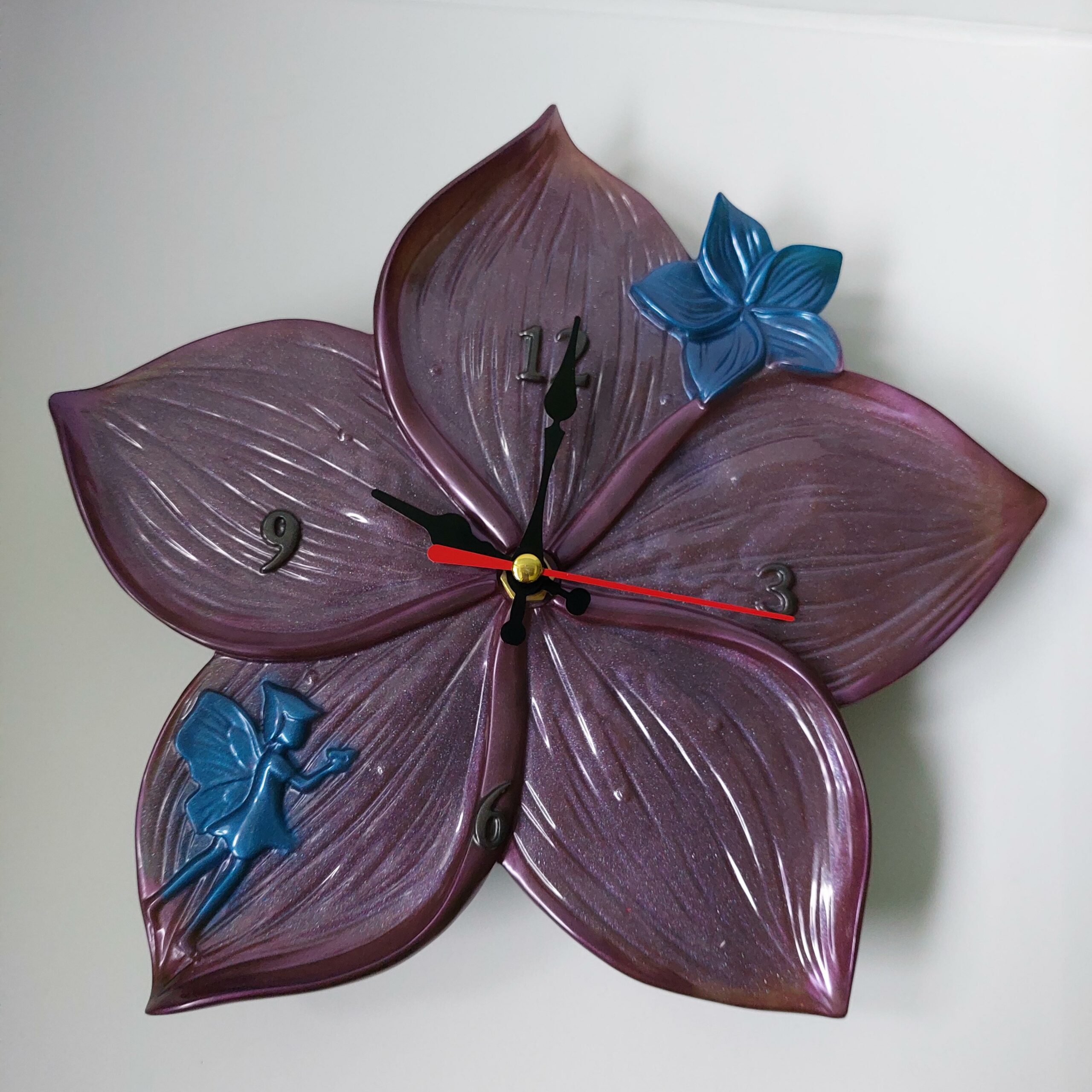 Deze leuke klok is gemaakt van epoxy hars in combinatie met mica poeder.