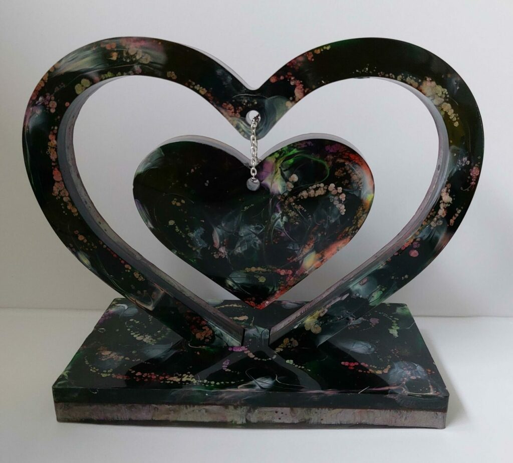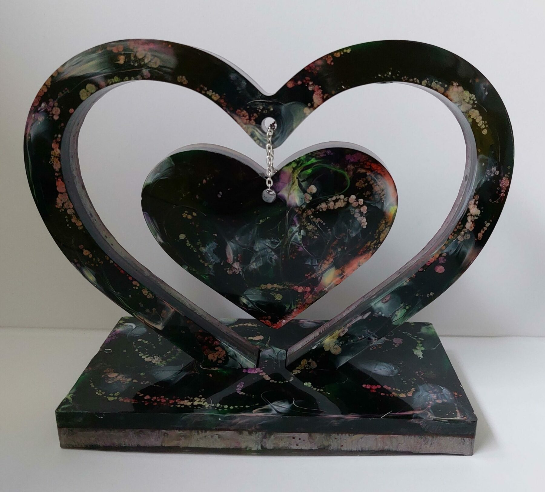 Deze fraaie verschijning is gemaakt van epoxy hars in combinatie met mica poeder en alcohol inkt.