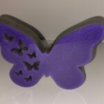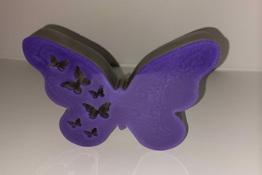 Deze mooie vlinder is gemaakt van epoxy hars met mica poeder. Door de open vlindertjes zie je de zwarte kleur van de onderlaag.