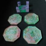 Zeer bijzonder set onderzetters gemaakt van epoxy hars in combinatie met mica poeder.
