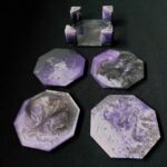 Zeer bijzonder set onderzetters gemaakt van epoxy hars in combinatie met mica poeder.