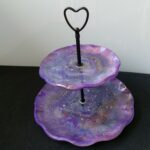 Deze mooie etagère is gemaakt van epoxy hars in combinatie met mica poeder en stukjes folie.