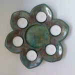 De schaal heeft 6 vakjes voor waxinelichtjes en 1 groter vak voor andere decoratie of een plantje.
