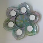 Schaal voor 6 waxinelichtjes en 1 groter vak voor decoratie.
