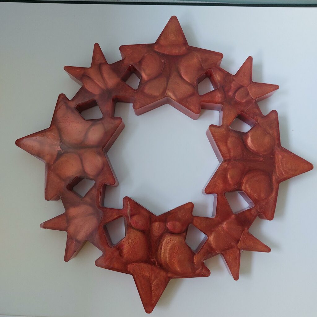 Deze sterren krans voor waxinelichtjes is gemaakt van epoxy hars in combinatie met mica poeder.