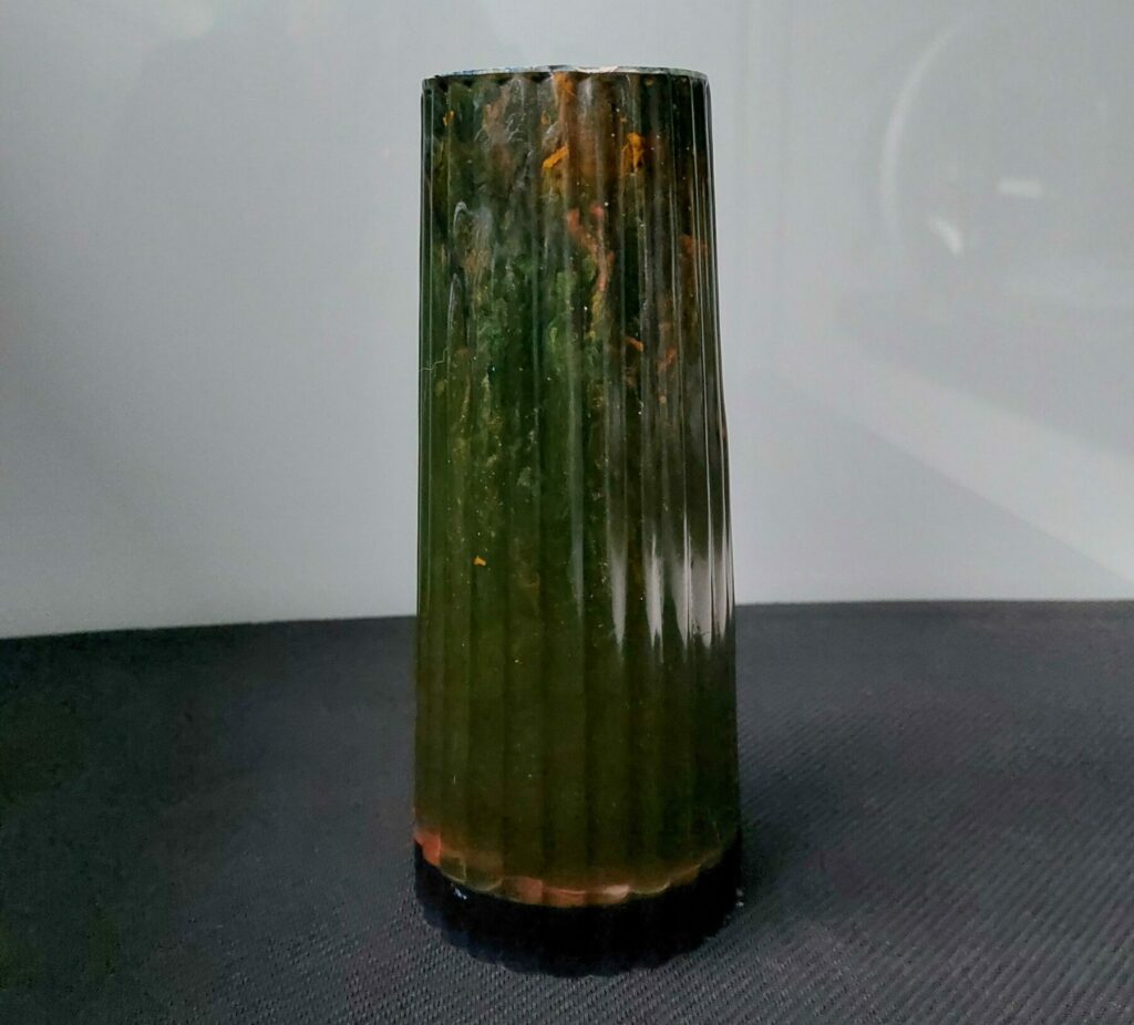 Mooie vaas in donkere bostinten gemaakt van epo hars in combinatie met alcohol inkt.
