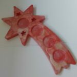 Bijzondere houder voor 4 waxinelichtjes in rood en goud.