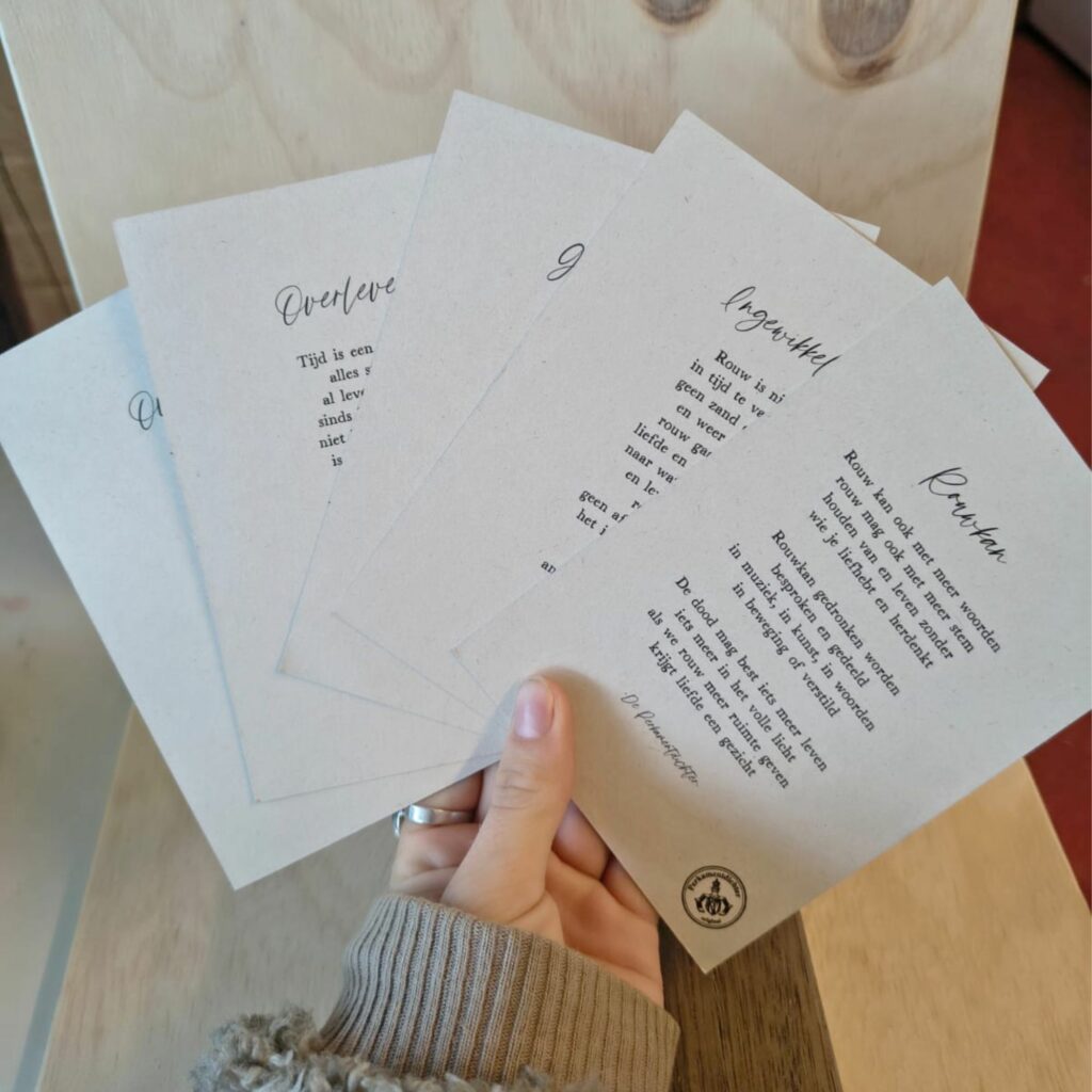 Vijf unieke kaarten met gedichten en illustraties over rouw: om stil te staan, te voelen en te verbinden.