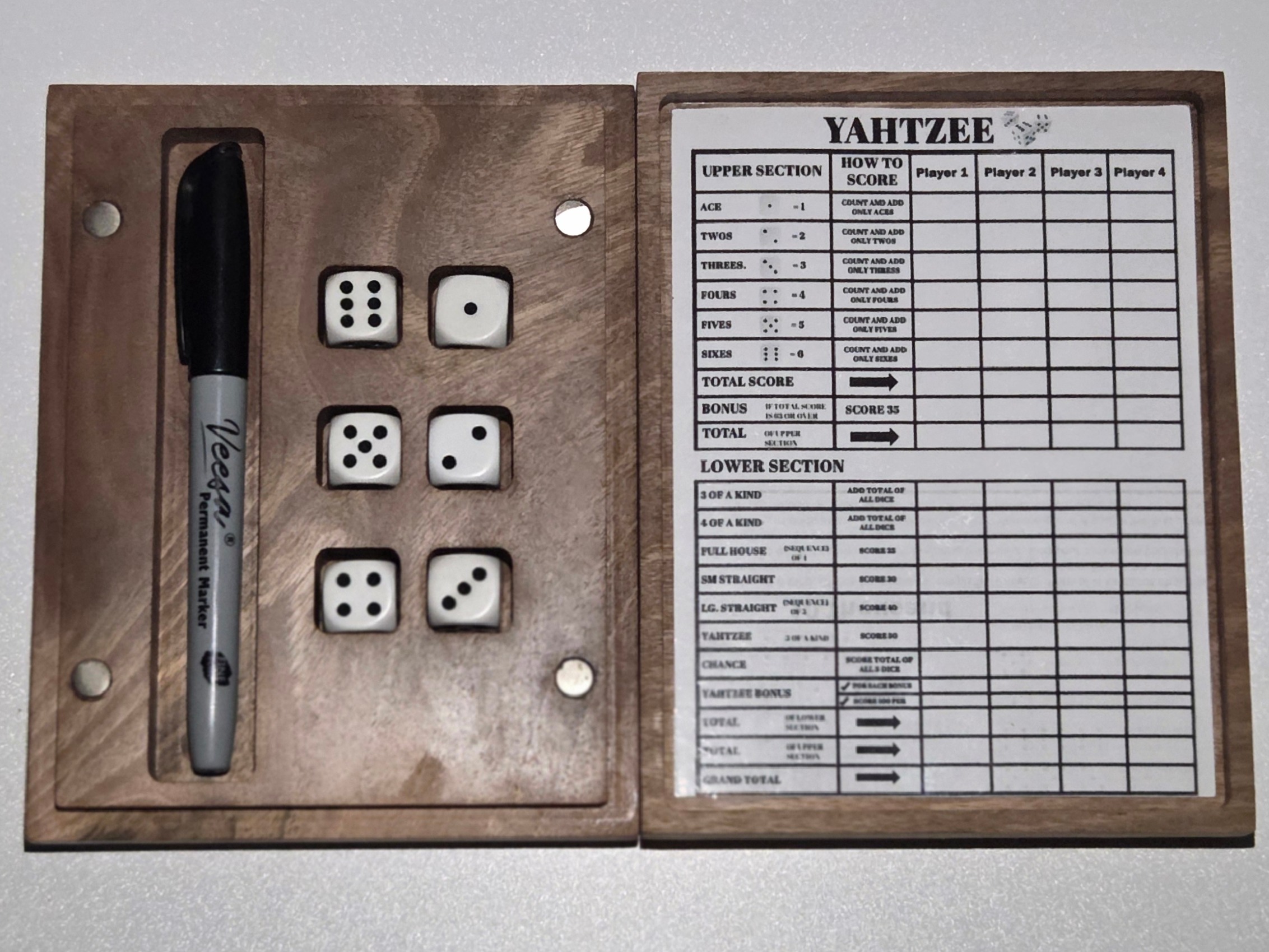 EXCLUSIEVE Yahtzee 10 Thousand Set – Notenhout CNC Maatwerk