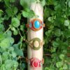 De onderste armband barst van de levendigheid. Met een dieprode cabochon die kracht en vuur uitstraalt, brengt dit stuk passie, moed en vitaliteit naar voren. De combinatie met licht topas, rood en turquoise kleuren maakt het een echte eyecatcher – perfect voor dromers en doeners.