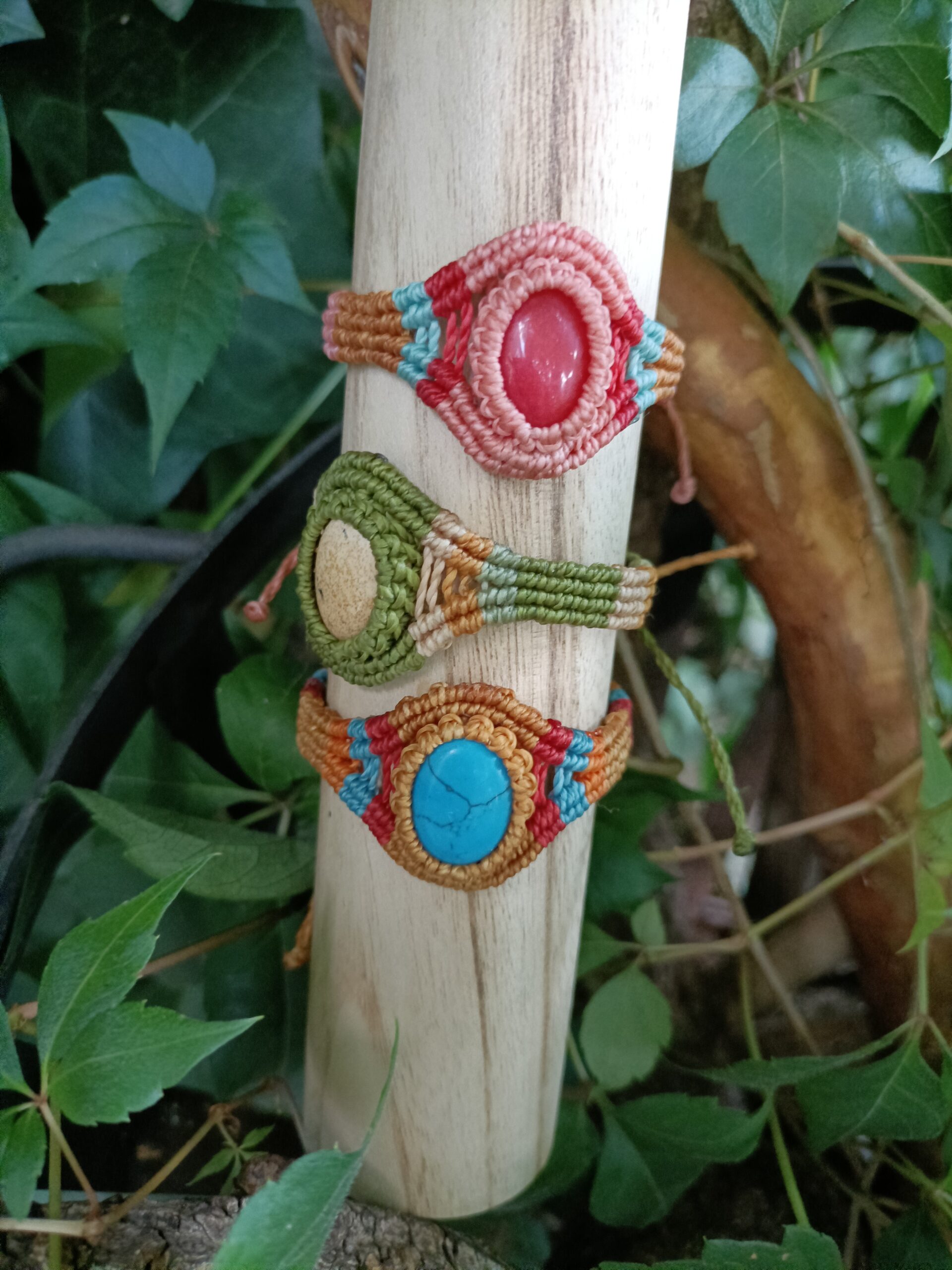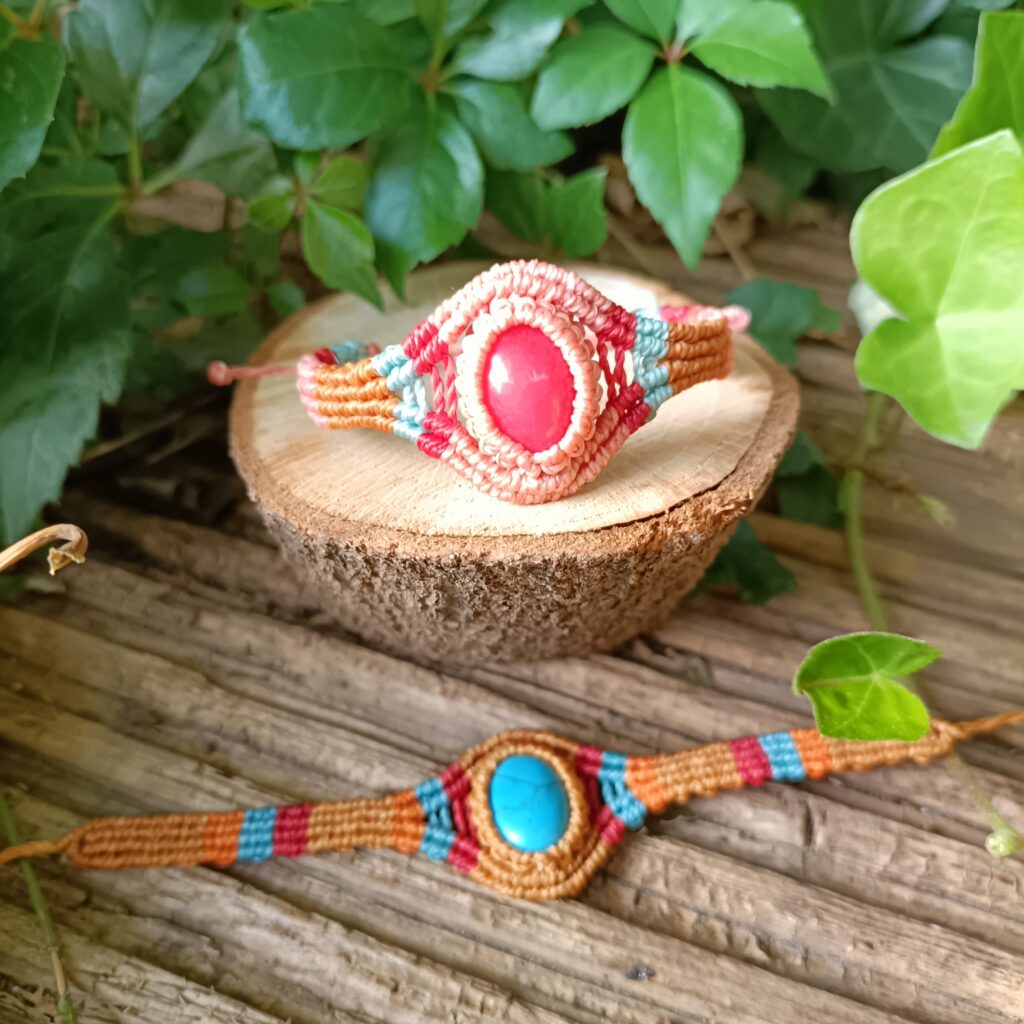 Joy – Handgemaakte macramé armband met Kleurrijke Cabochon