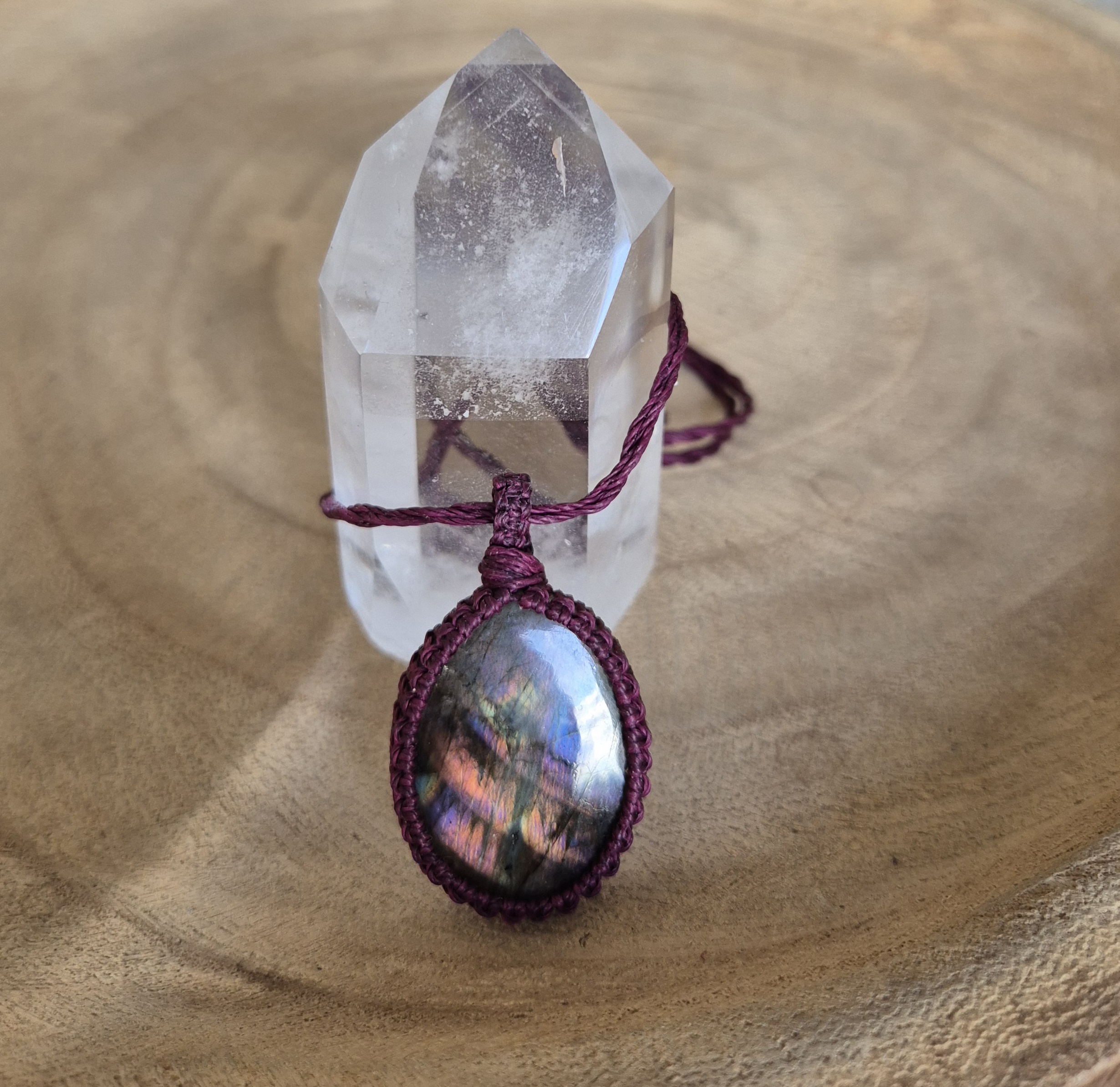 Carin’s Macramé ketting bordeaux Labradoriet