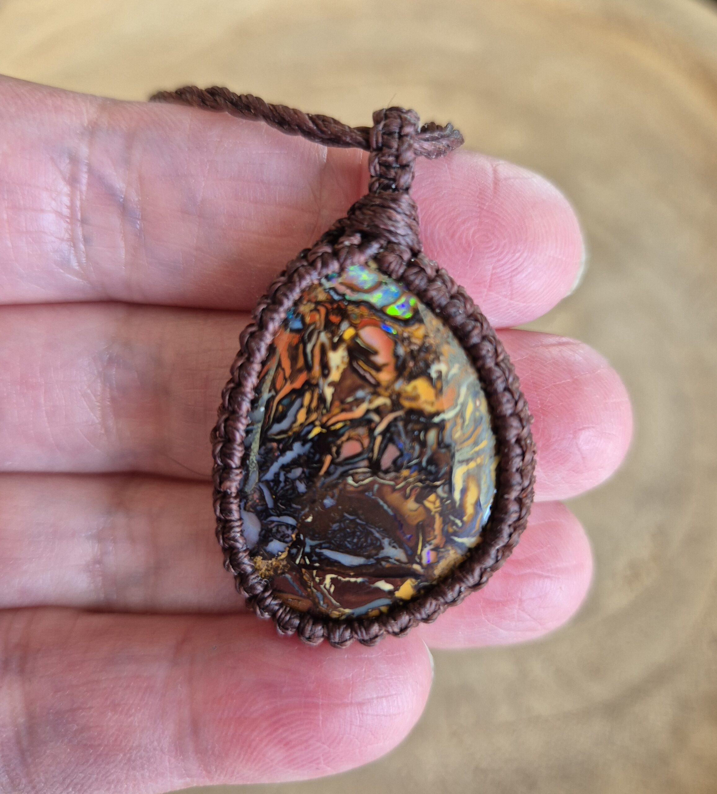 Boulder Opaal kalmeert de ziel, brengt mentale en emotionele balans en werkt erg goed voor het hart. Het helpt je om vanuit je ziel niveau te leven en jezelf en je omgeving weer te gaan ervaren. Het helpt je bij het loslaten van gevoelens waardoor je je laat provoceren. Het helpt ook om oude hindernissen en schuldgevoelens los te laten. Boulder Opaal is een steen van vooruitgang, expansie en ontwikkeling. Het verheldert de aura en stimuleert genezing van gebieden waar de aura donker is, ook lijnt hij de meridianen uit en verbindt ze met de etherische lichamen. Boulder Opaal bevordert de communicatie tussen je Oorspronkelijke Zelf, Hogere Zelf en je persoontje en helpt je duidelijk te krijgen wat je doel op aarde is, wat je verlangens hier zijn. Ook wordt deze Opaal gebruikt om verbinding met de Sterren te krijgen, communicatie tussen de Aardse- en de Sterren wezens. Het stimuleert contact met buitenaardse intelligenties en geeft inzichten en kennis over het ontstaan van de Creatie. Ook wordt Boulder Opaal gebruikt om makkelijker in contact te komen met je spirituele gidsen en je dieren gidsen. Hele fijne steen voor medicijnwiel ceremonies om energie te stabiliseren en om in contact met gidsen te komen. Deze Opaal geeft stabiliteit in ons leven, vooral in tijden van verandering. Hij zorgt ervoor dat je je pad helder blijft zien. De steen is zeer behulpzaam bij depressie, hij geeft je het gevoel het leven weer aan te kunnen. Hele goede steen voor homeopathie en remedies omdat het helende energie bevordert. Boulder opaal is een echte Opaal die ons jong houdt. Opaal confronteert je met je eigen innerlijk en je schaduwzijde. Voor mensen die liever onwetend willen blijven en hun innerlijk niet willen transmuteren wordt hij daarom soms als negatief ervaren. Leg een opaal af en toe in water, omdat ze uit kunnen drogen en barsten. Het is een delicate steen met een fijne vibratie. Het versterkt kosmisch bewustzijn en zorgt voor geestelijke en mystieke visioenen. Opaal is een beschermende steen en kan gebruikt worden als je je op gevaarlijke plaatsen begeeft. Opaal versterkt eigenschappen en brengt kenmerken aan de oppervlakte die transformatie nodig hebben. Het helpt je je eigenwaarde te vergroten en maakt je spontaan. Emotioneel werd opaal altijd geassocieerd met liefde, hartstocht, verlangen en erotiek. Opalen kunnen genezing naar het energieveld van de aarde sturen, waarbij tekorten worden aangevuld en het netwerk opnieuw van energie wordt voorzien. Opaal versterkt de wil om te leven, het zou verlichtend werken bij de ziekte van Parkinson, infecties en koorts en verbetert het geheugen. Opaal werkt ondersteunend voor het bloed en de nieren en zou het insulinegehalte reguleren.