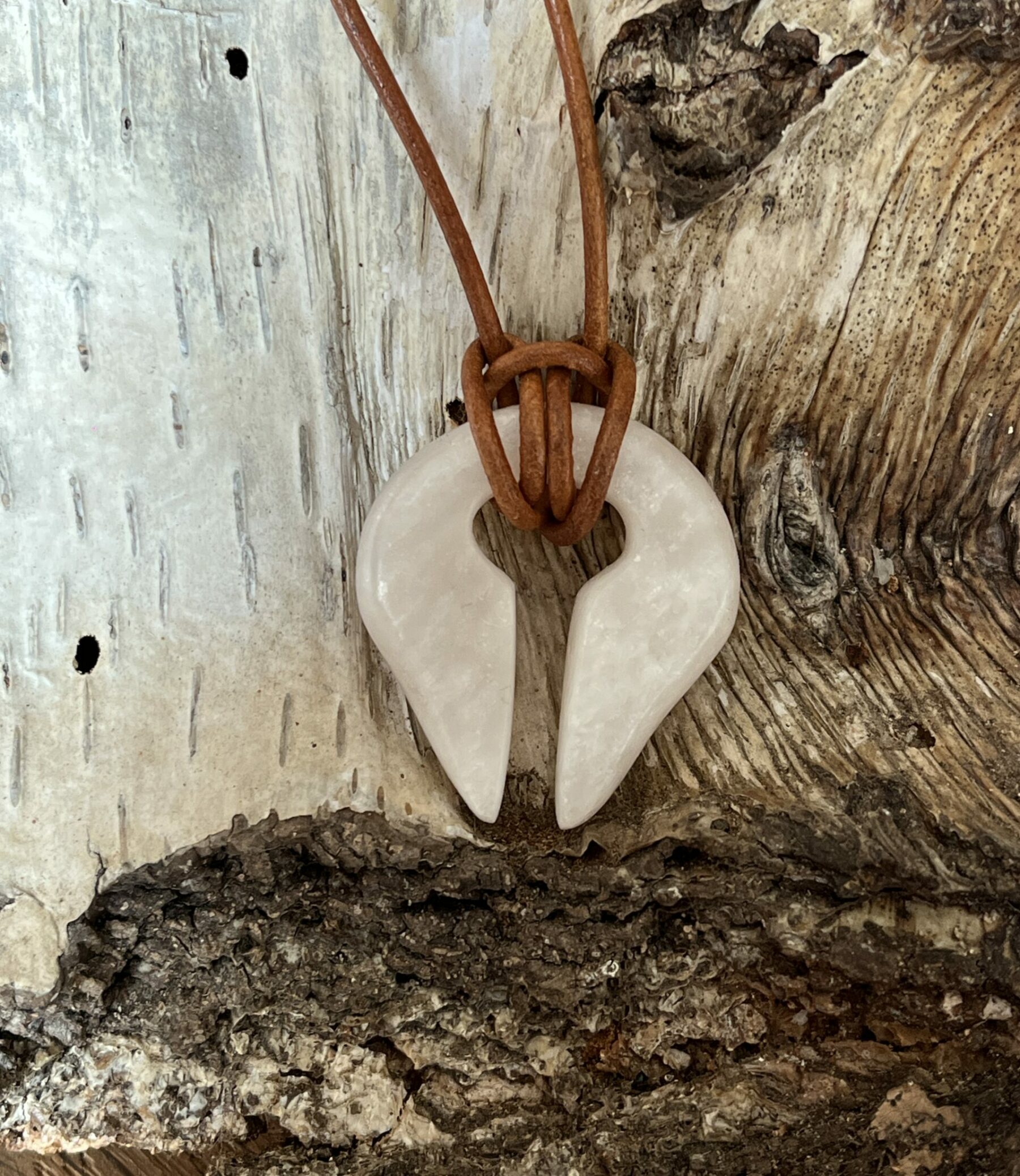 De hanger is gemaakt uit beeldhouwsteen Steatiet ( speksteen) .