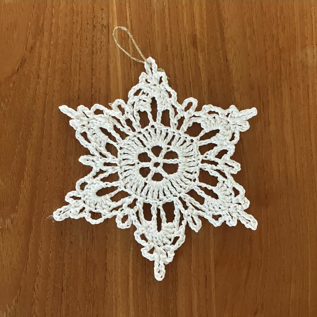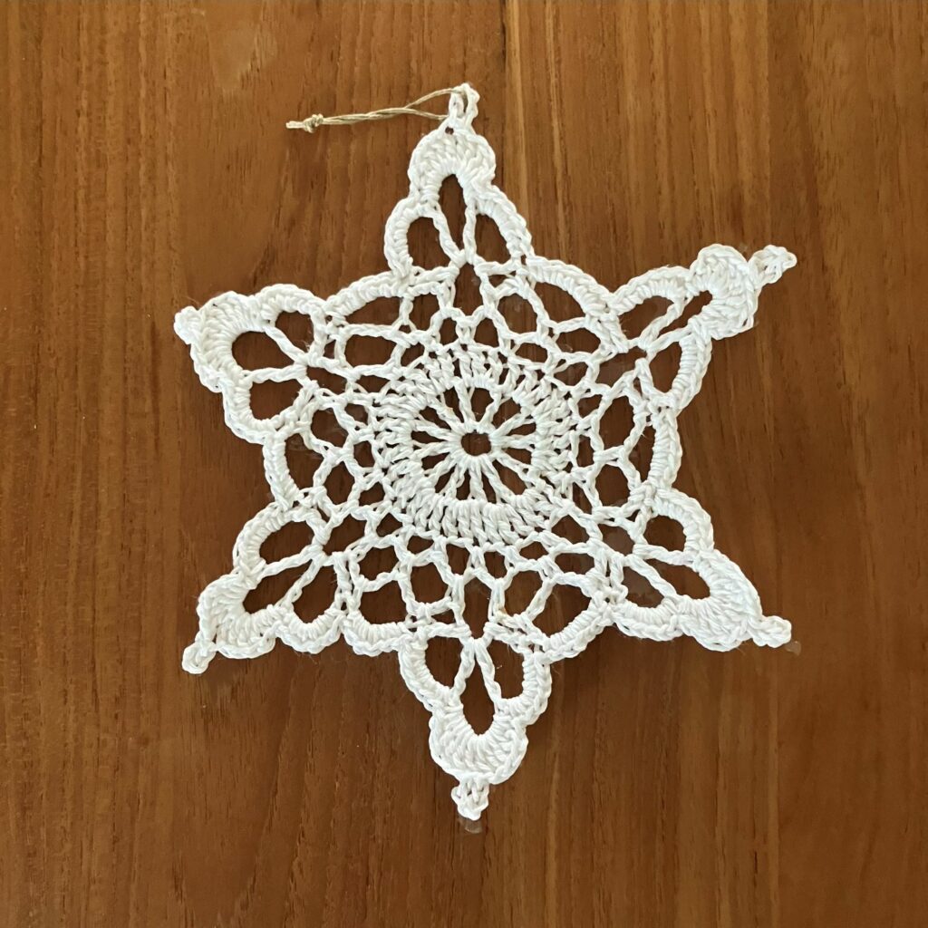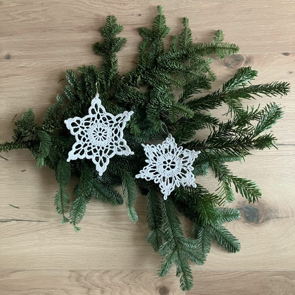 Set van 2 kerstboomhangers, gehaakt met wit katoen