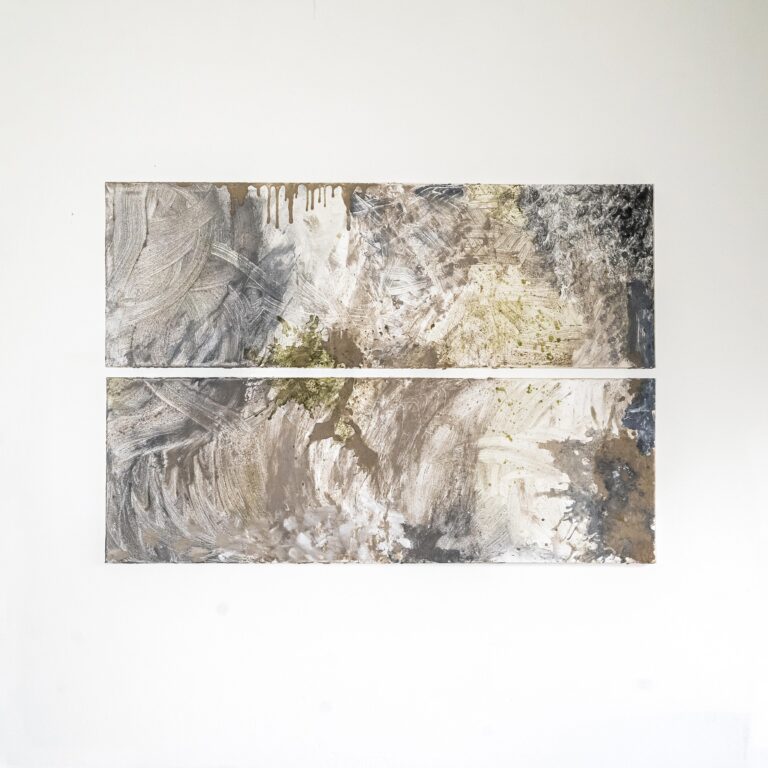 Voor de eerste keer heb ik een abstract schilderij gemaakt. Omdat ik tegenwoordig veel inspiratie haal uit de natuur, wilde ik iets bijzonders met dit schilderij doen. Alle kleuren op deze canvassen komen rechtstreeks uit de natuur. Om precies te zijn; uit de Loonse en Drunense duinen. Hier kom ik vaak om te wandelen en om op deze manier mijn frequentie te verhogen. Met diezelfde energie heb ik dit kunstwerk gemaakt, die door middel van de natuurlijke elementen en kleuren rust en kalmte uit straalt. Ik ben in het bos opzoek gegaan naar verschillende materialen die mooie kleuren zouden geven. Vervolgens heb ik van deze materialen zelf mijn verf voor dit schilderij gemaakt. Door deze rauwe, natuurlijke materialen heeft het schilderij een heel mooi reliëf. Zand, dennennaalden, verschillende soorten plantjes en houtskool zijn de voornaamste elementen waarvan ik verf heb gemaakt.
