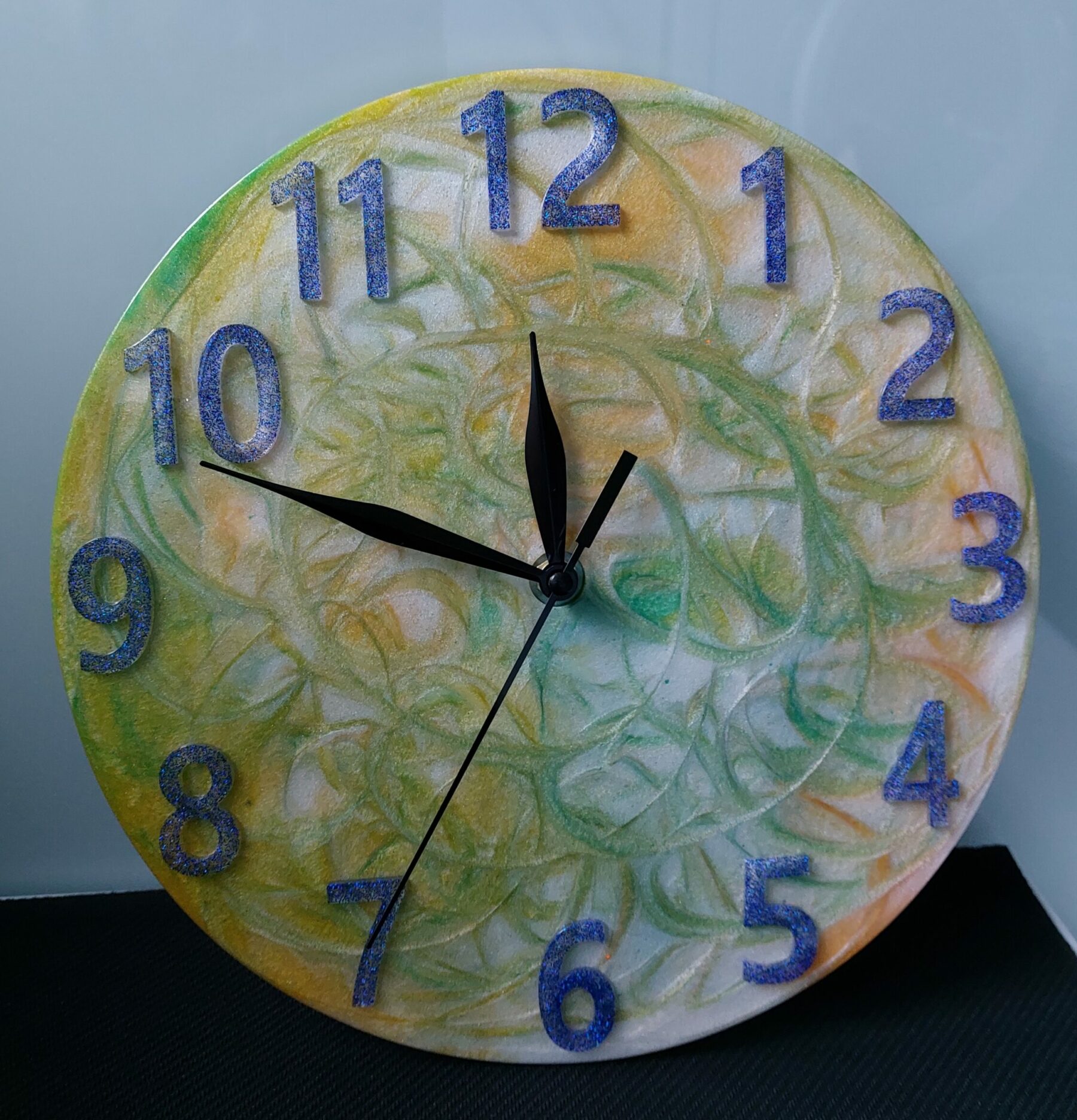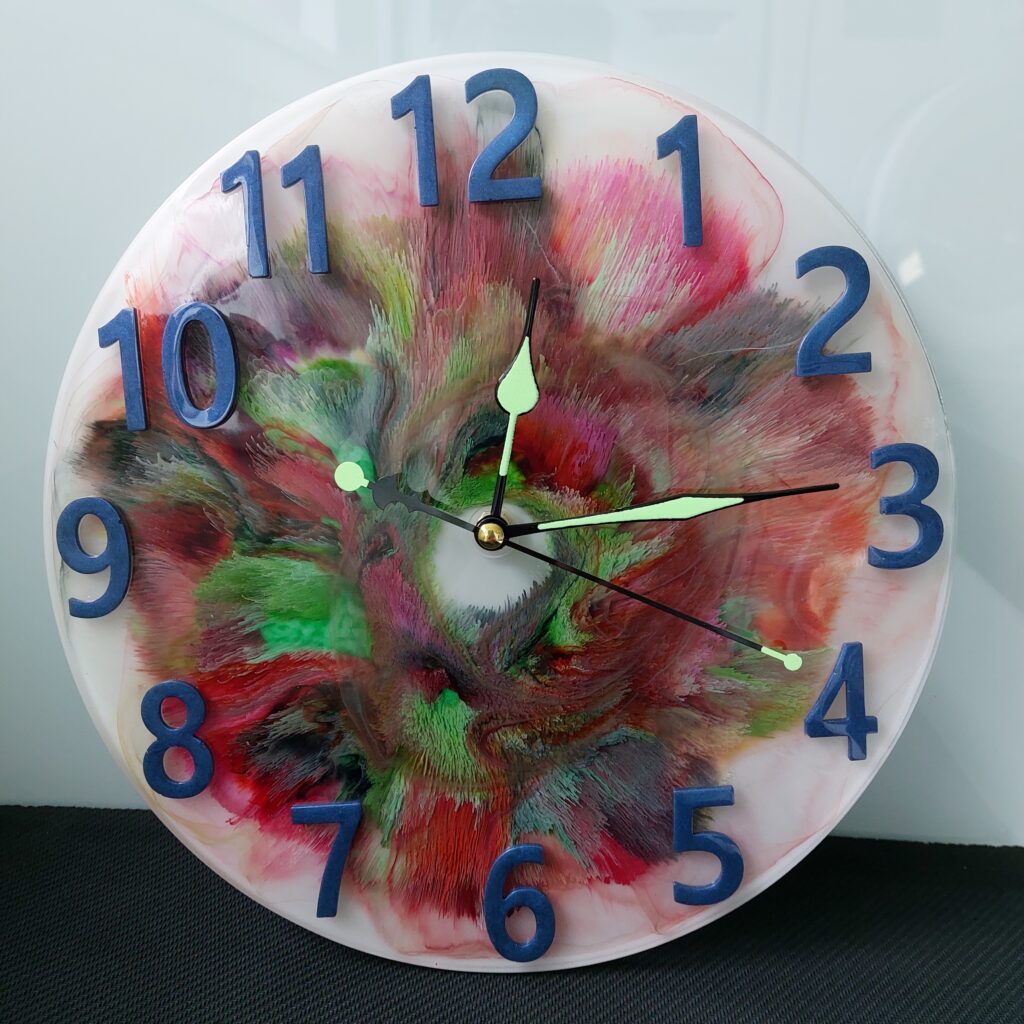 Unieke klok van Epoxy, 25 cm doorsnede.